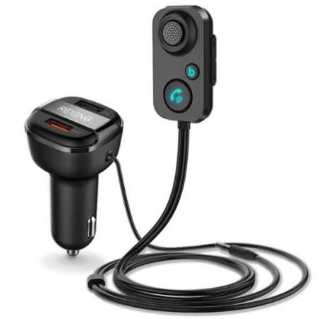Rexing - FMT2 Bluetooth FM Transmitter Hands-Free Car Kit with QC3.0 and Smart 2.4A Dual USB Ports - Black