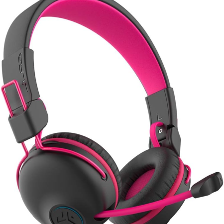 JLab JBuddies Play Gaming Wireless Kids Headset, Pink, 22+ Hour Bluetooth 5 Playtime 60ms Super-Low Latency for Mobile Gameplay, Retractable Boom Mic, AUX Cord Compatible w/Gaming Consoles