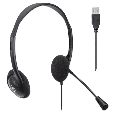 MANHATTAN USB Headset with Mic & Long 5 ft Cable