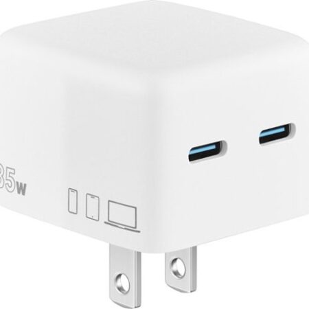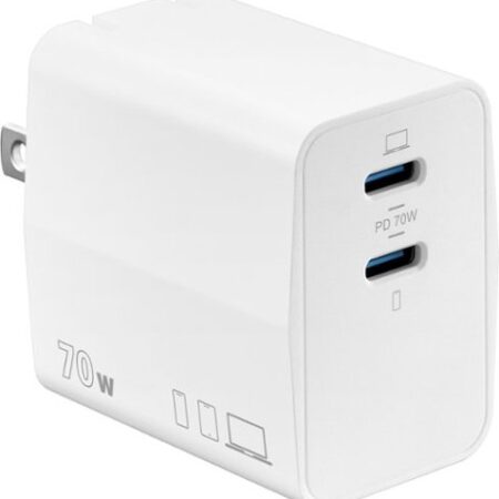 Insignia™ - 70W Dual Port USB-C GaN Wall Charger for MacBook, iPad, iPhone, Apple Watch, AirPods, Samsung Smartphones and More - White