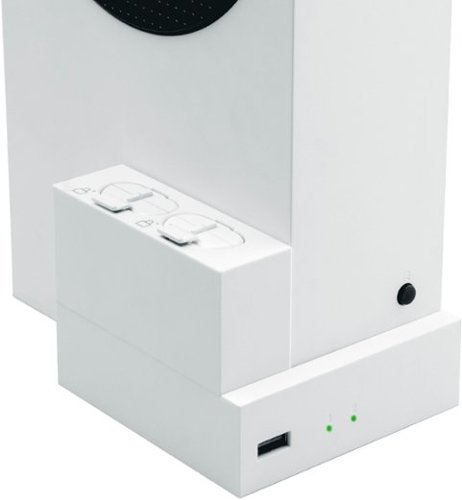 Ensure you always have a powered Xbox One controller with this NEXT Gaming Side Dock Battery Charging Station for Xbox Series S. Exclusively designed for the Xbox Series S console, it has two battery compartments so you can charge two controller batteries simultaneously. Includes two high-power 1200mAh battery packs compatible with Xbox controllers. LED lights inform you when the batteries are charged and ready to use. Plug any compatible USB device into the built-in USB 2.1 pass-thru USB port.